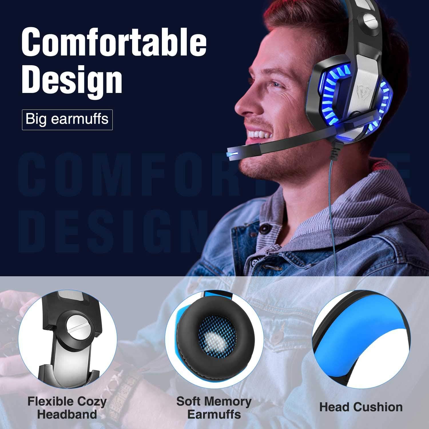 - Diseño ergonómico y material ligero para llevar. Diadema acolchada autoajustable y almohadillas con espuma de memoria suave, auriculares ENVEL para juegos te proporcionan una experiencia de uso muy cómoda. Estructura de haz especialmente diseñada, puedes obtener una experiencia de uso cómoda incluso para personas con un tamaño de cabeza ancha.