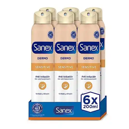 Aprovecha la oferta en Amazon para un pack de 6 desodorantes Sanex Dermo Sensitive en spray, de 200 ml cada uno. Están diseñados específicamente para pieles sensibles y ofrecen hasta 24 horas de protección contra el sudor y los olores, cuidando y restaurando el pH natural de la piel.