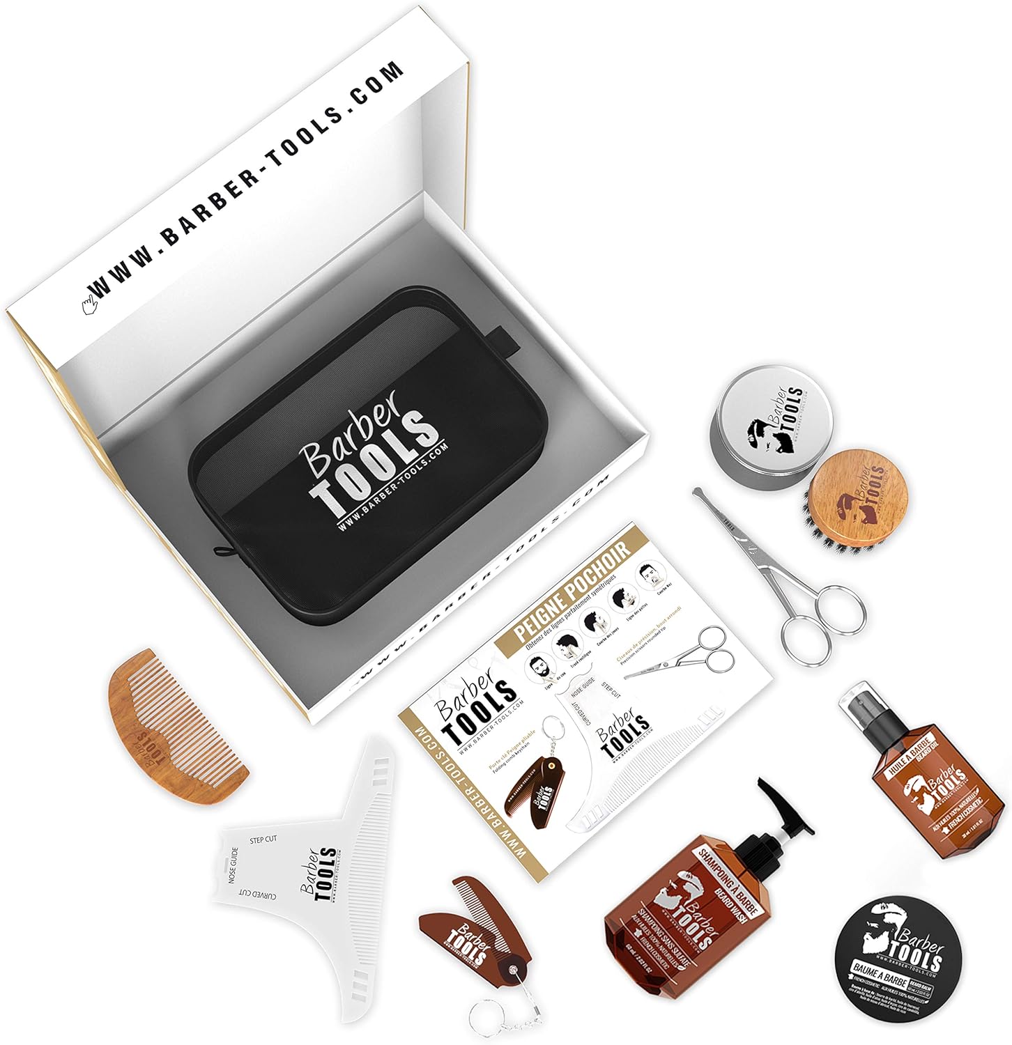 Buen precio para este set de cuidado y arreglo de barbas. Incluye aceita, bálsamo, champú, tijeras y varios cepillos y peines para definir la barba y bigote.