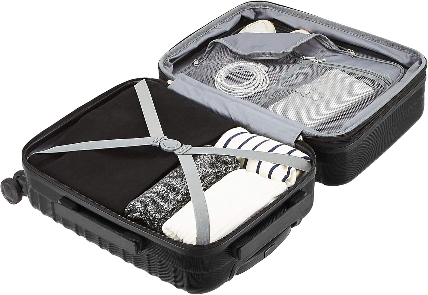Maleta rígida marca Amazon con dimensiones 38.1 x 26.4 x 56 cm, una gran capacidad de 41 litro y fabricada en ABS extragrueso. En color negro bajando un 50% sobre su precio anterior. Cuenta con 3 bolsillos interiores con cremallera, es ampliable un 15% extra, dispone de mango telescópico y 4 ruedas giratorias dobles.
