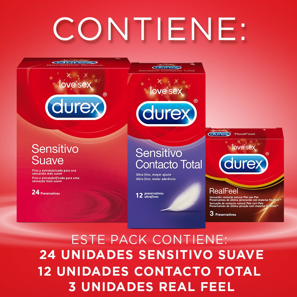Bajada de precio en Amazon para este pack especial Durex Sensitivo que contiene: una caja de 24 uds Sensitivo Suave, una caja de 12 uds Sensitivo Contacto Total y una caja de 3 uds de RealFeel. Elige "compra recurrente".